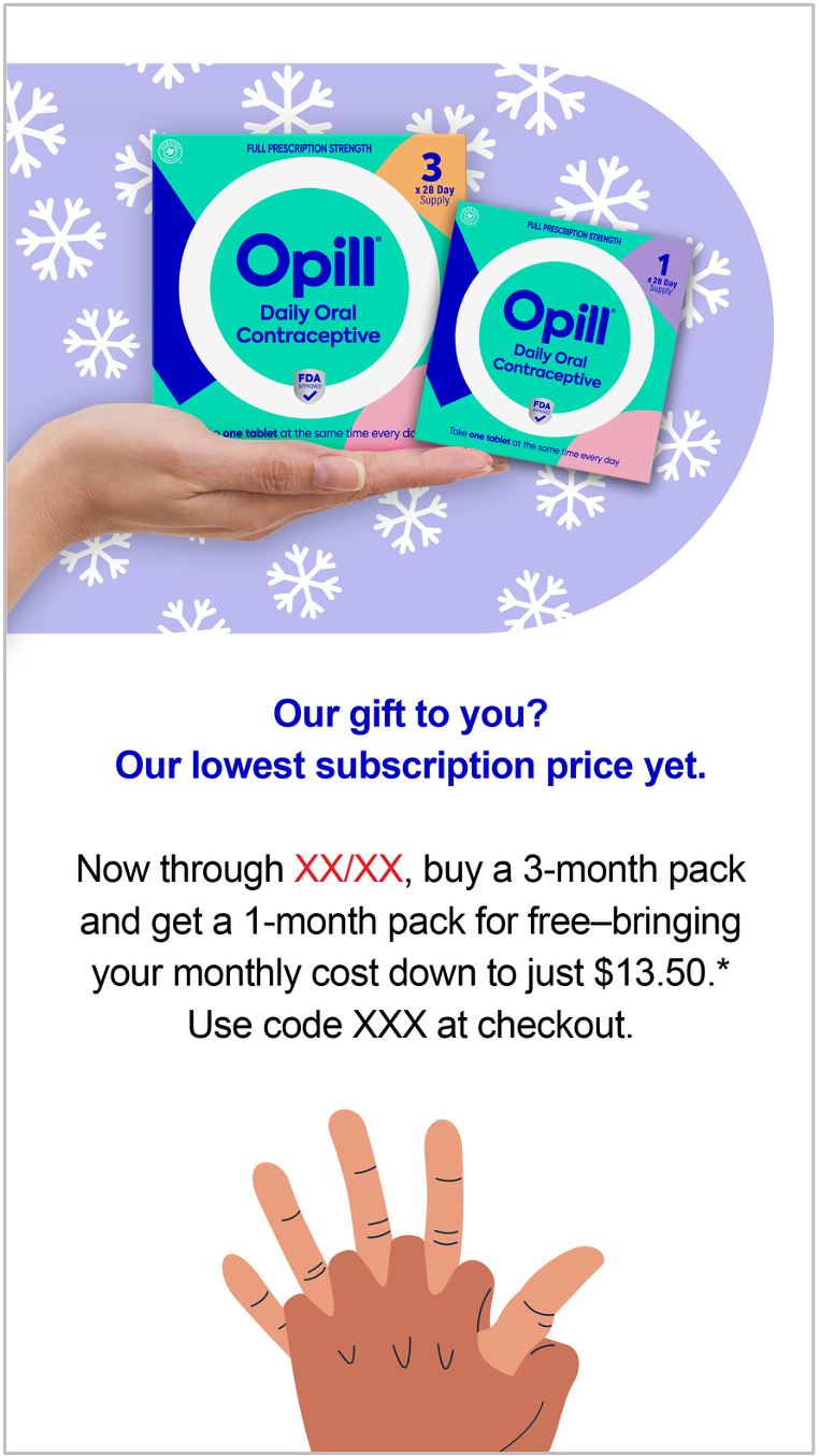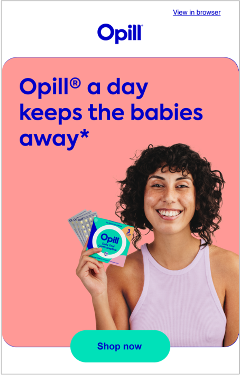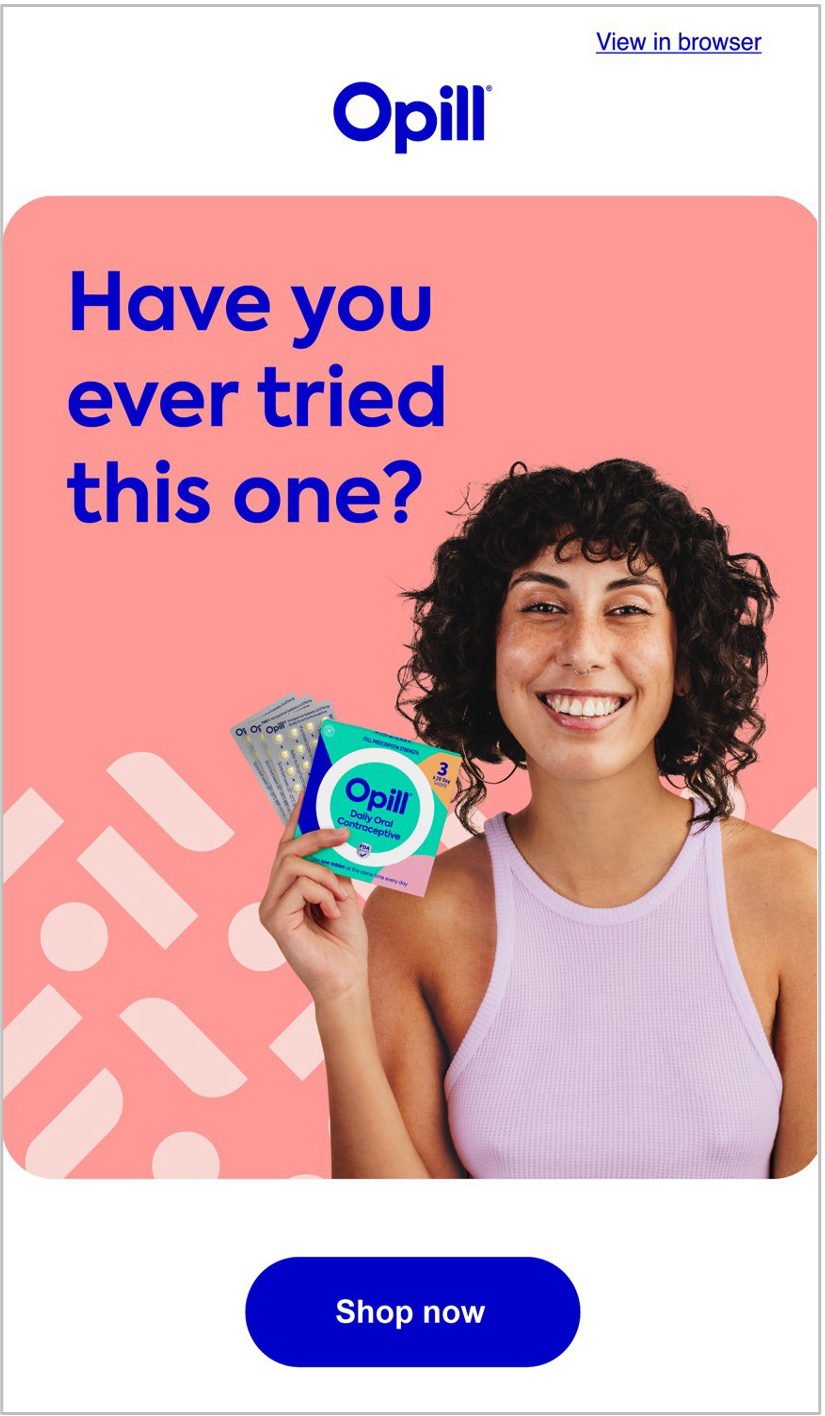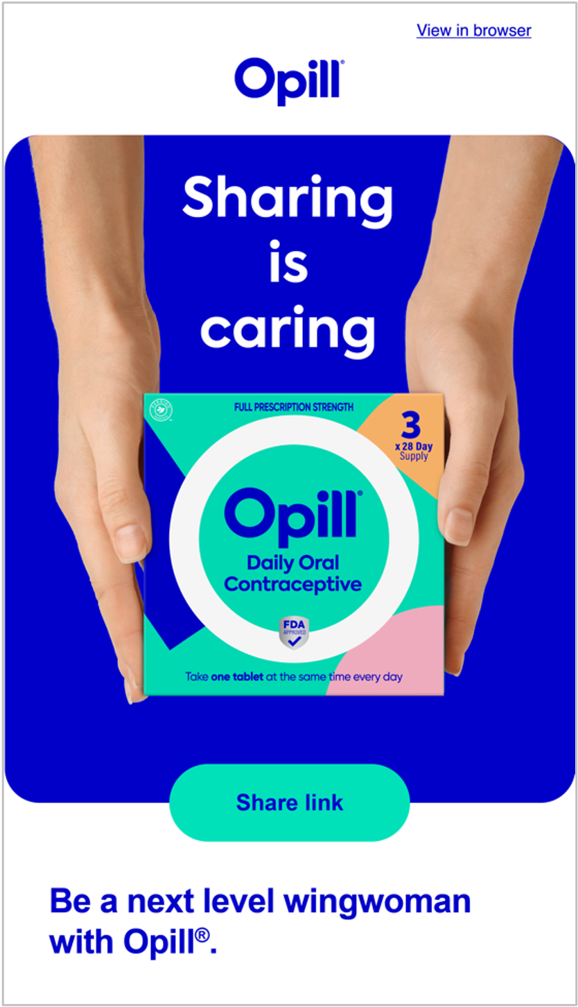 CRM emails introducing Gen Z to the first over-the-counter birth control in an authentic, humorous, and approachable tone.