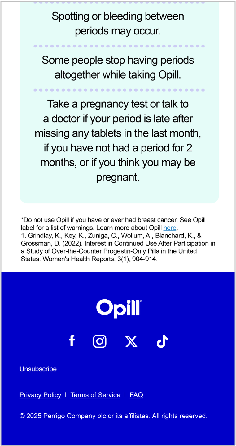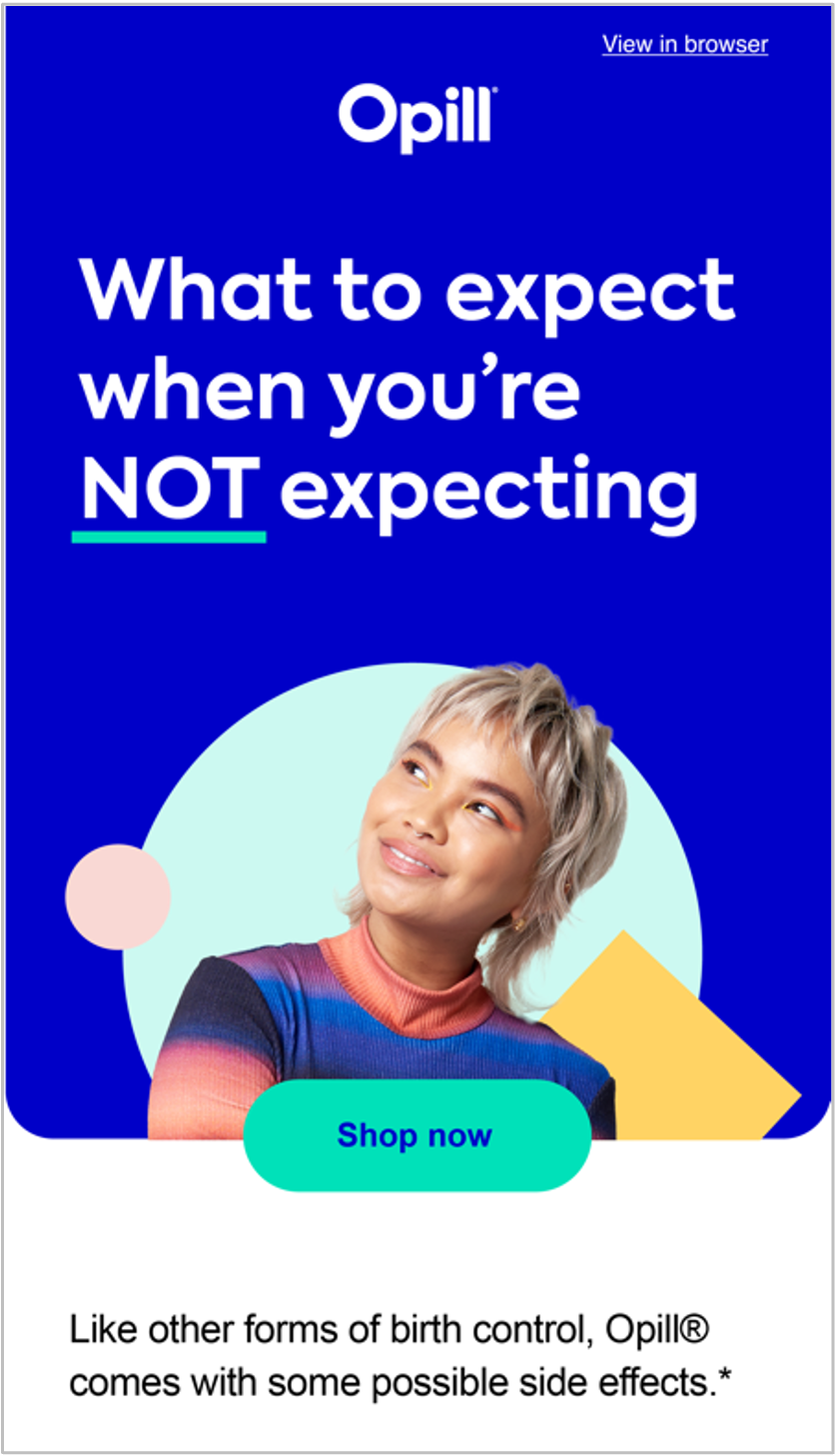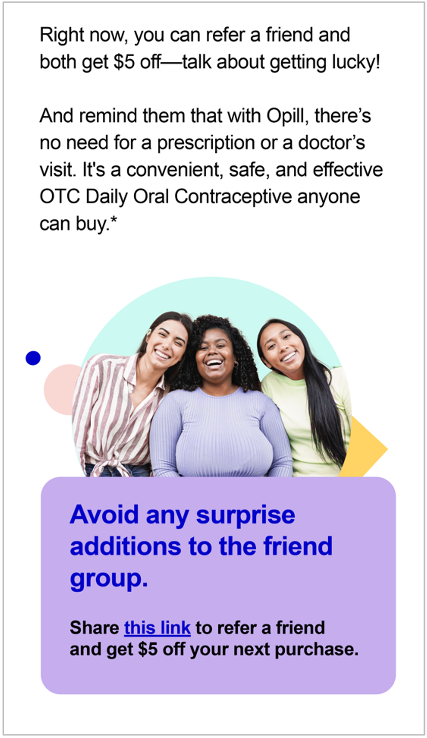 CRM emails introducing Gen Z to the first over-the-counter birth control in an authentic, humorous, and approachable tone.