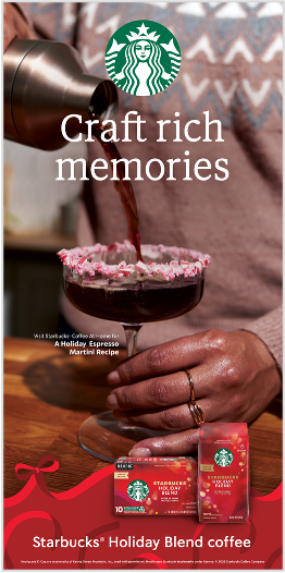 As we enter the holiday season, it’s easy to get caught up in the hustle and bustle. With Starbucks, take the chance to slow down and find real moments of joy. Then, share these moments with the people you love. Whether it be a cozy cup by the fire or a round of after dinner espresso martinis, find more chances to connect over coffee and share the joy.